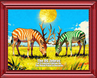About : The OG Zebras, the orange and green Zebras churring in an open field.