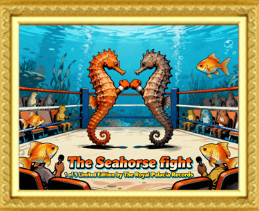 About : Underwater seahorse in a boxing ring. A unique art showing an imagined aquatic life