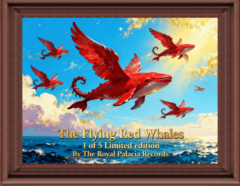About : Multiple hybrid red whales flying above the ocean giving a cinematic look.