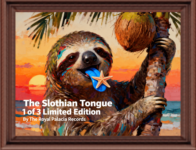 About : A funny abstract art of a sloth sticking his blue tongue out giving a psychedelic yet beach vibe.